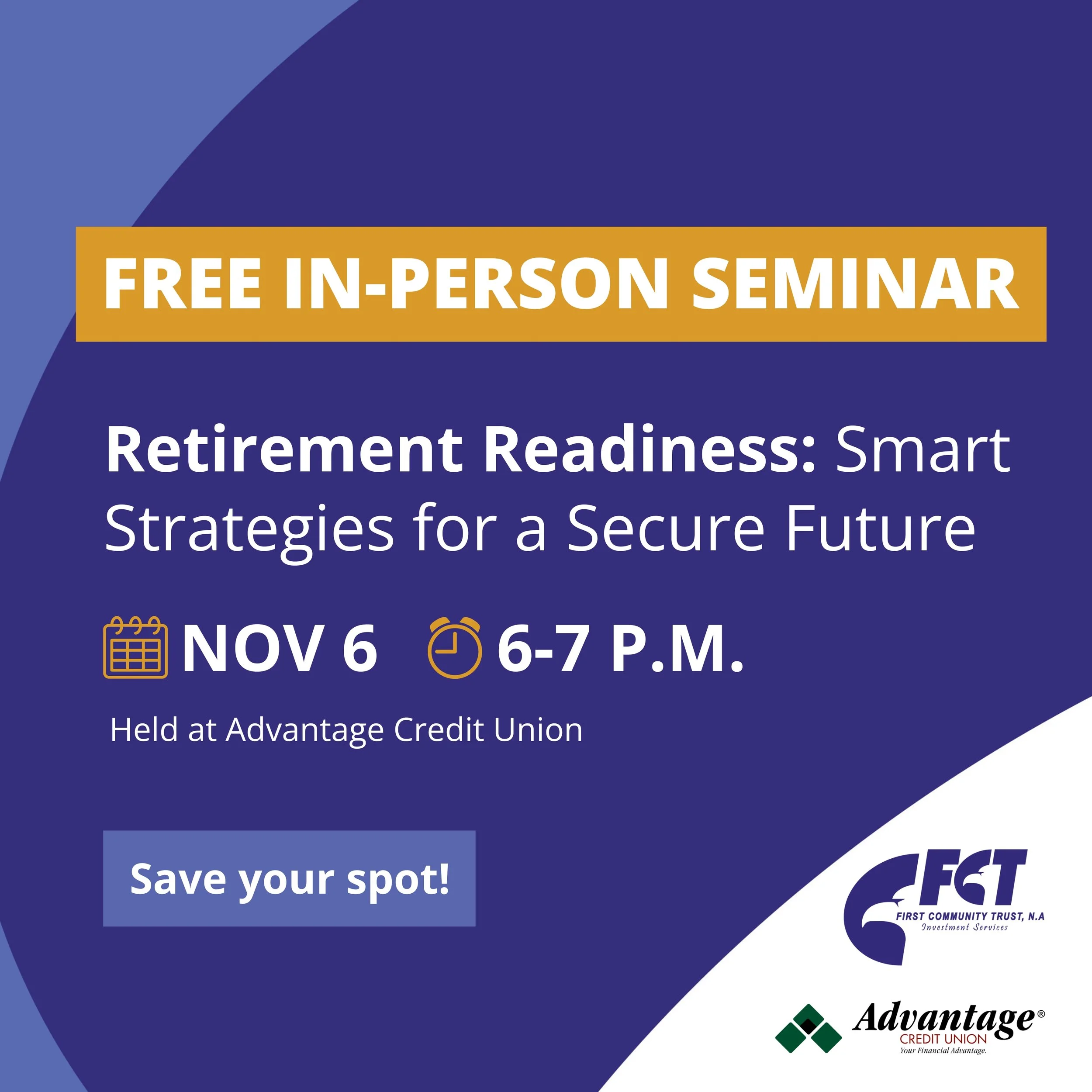Join us as we host our Trust Officer, Lisa Grefe for an upcoming free seminar discussing strategies to get retirement ready, maximize your benefits, and secure your future.